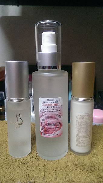 左邊是正常版(30ml)的玻尿酸精華,中間是加大版(120ml)的玫瑰玻尿酸精華,最右邊是蜂王乳滲透乳(30ml)